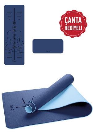 Gymo Gymo Sembol Hizalamalı 6mm TPE Yoga Matı Pilates Minderi Diz Dirsek Koruyucu Matlı Set Mavi